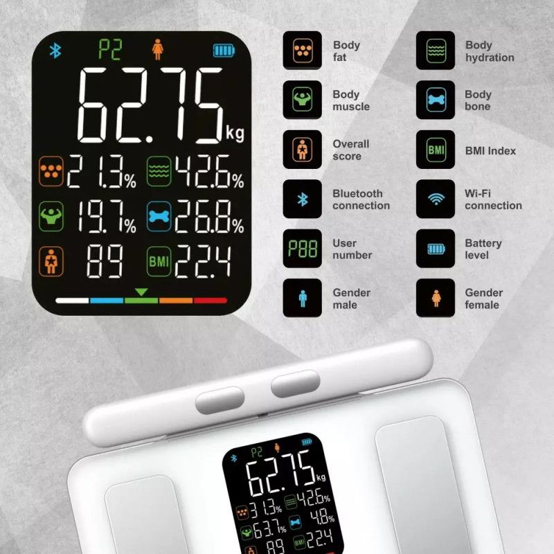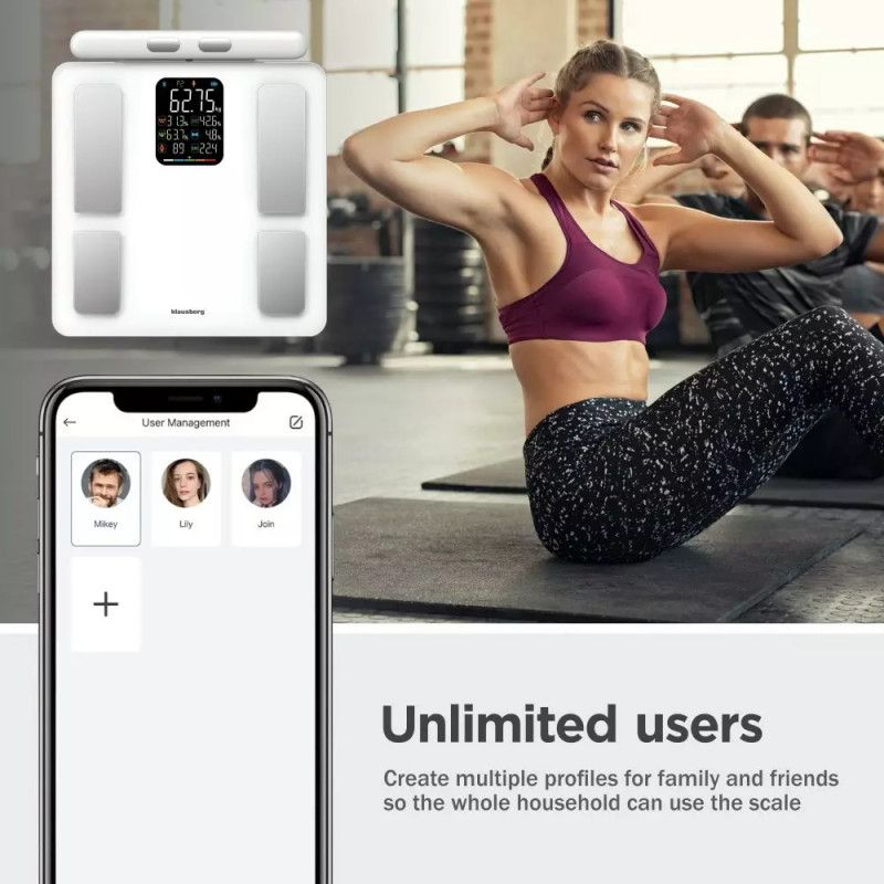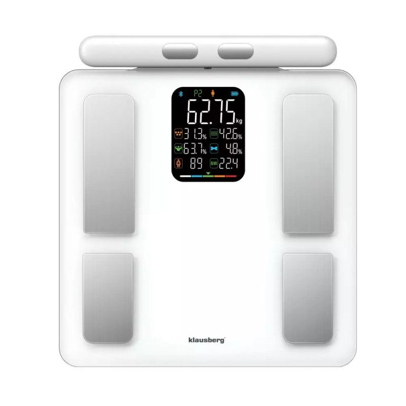 Кантар - анализатор Klausberg KB 7857, До 180 кг, Bluetooth, Android/iOS, LCD дисплей, 14 телесни стойности, Бял