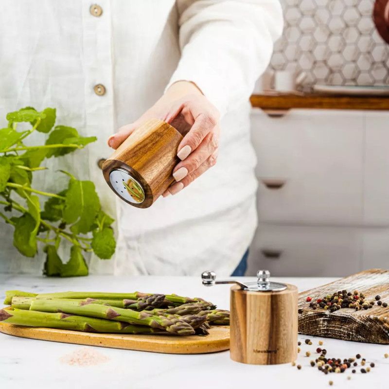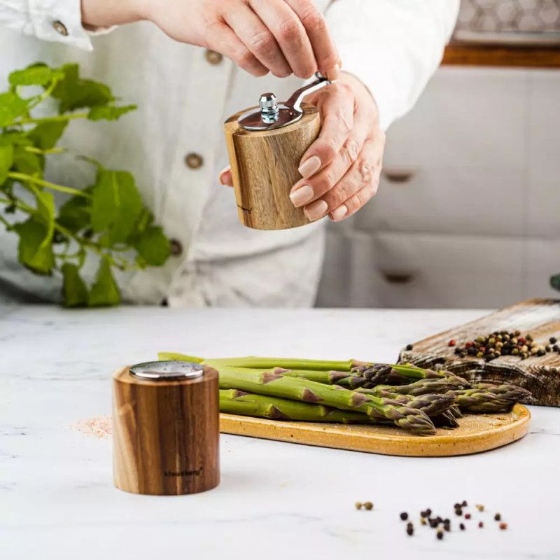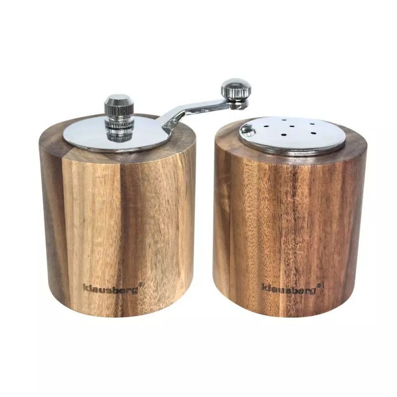 Комплект мелничка за пипер и солница Klausberg KB 7859, Керамичен механизъм, Акациево дърво, Кафяв