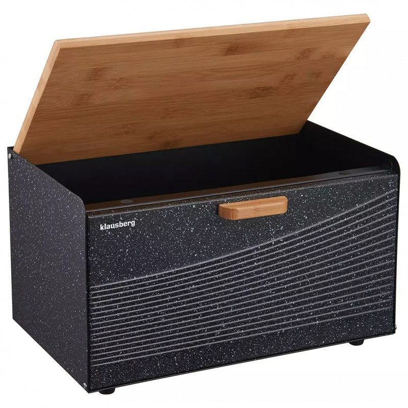 Кутия за хляб Klausberg KB 7464, 35.5 см, Стомана, Бамбук, Горен и преден капак, Черен
