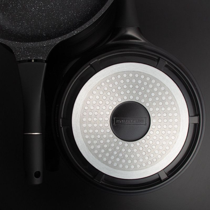 Комплект тенджери и тигани Royalty Line RL-ES1014M Black, Лят алуминий, 14 части, Мраморно покритие, Черен