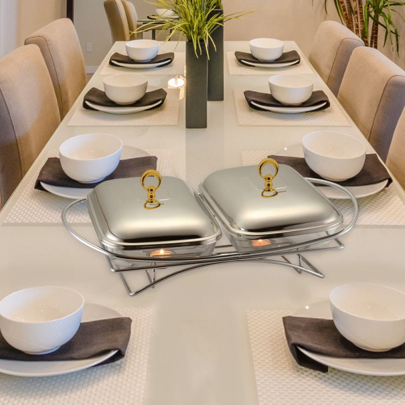 Съд за топло сервиране Klausberg KB 7922, 2х1.5 л, Термоустойчиво стъкло, Инокс/златист