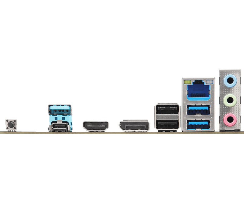 I/O:2 x Antenna Mounting Points;1 x HDMI Port;1 x DisplayPort 1.4;1 x USB 3.2 Gen2x2 Type-C Port (20 Gb/s);3 x USB 3.2 Gen1 Ports;2 x USB 2.0 Ports;1 x RJ-45 LAN Port;1 x BIOS Flashback Button;HD Audio Jacks: Line in / Front Speaker / Microphone
