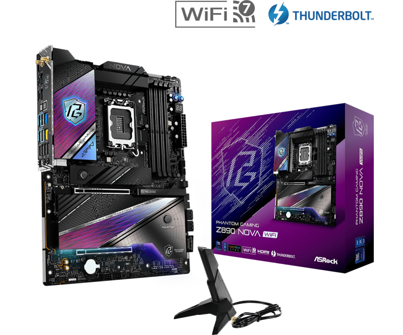 Дънна платка ASROCK Phantom Gaming Z890 Nova WiFi (Intel 1851, 4 x DDR5, 1 x Blazing M.2, 5 x Hyper M.2, Wi-Fi 7, 5Gbit LAN, 2.5Gbit LAN, HDMI, 2 xThunderbolt™ 4) ATX