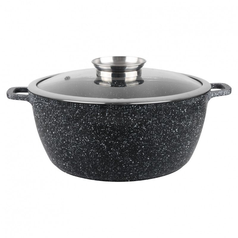 Тенджера с капак Oliver Voltz OV54318C22, Ø22x10 см, 3.2 л, Лят алуминий, Керамично мраморно покритие, Черен