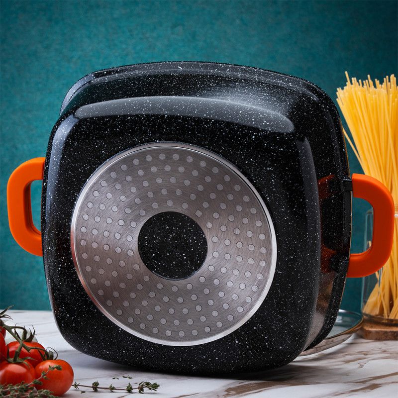 - Висококачествена и издръжлива квадратна тенджера от лят алуминий.