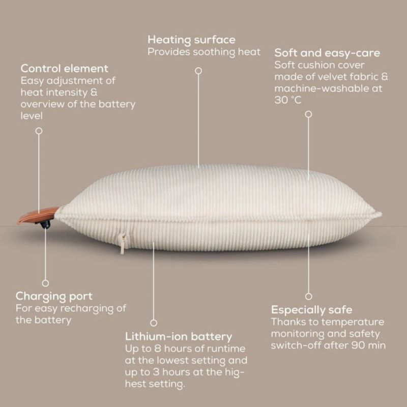 Термоподложка Beurer HK 77 Heaty cashmere-creme; lithium-ion battery; Soft velvet cushion cover machine-washable at 30°C; 3 temperature settings; Fast heating; BSS; 45(L)x45(W) cm