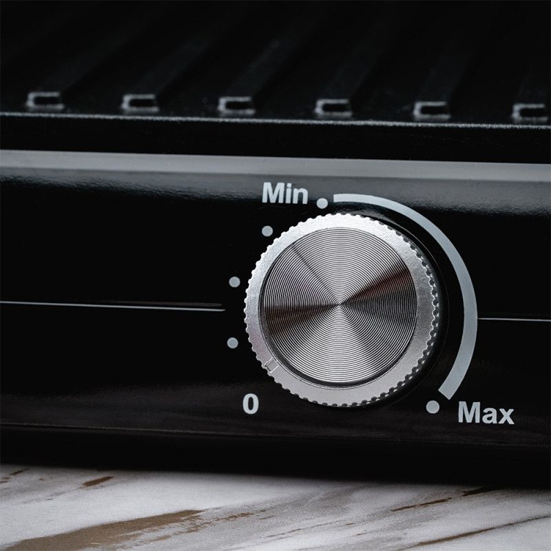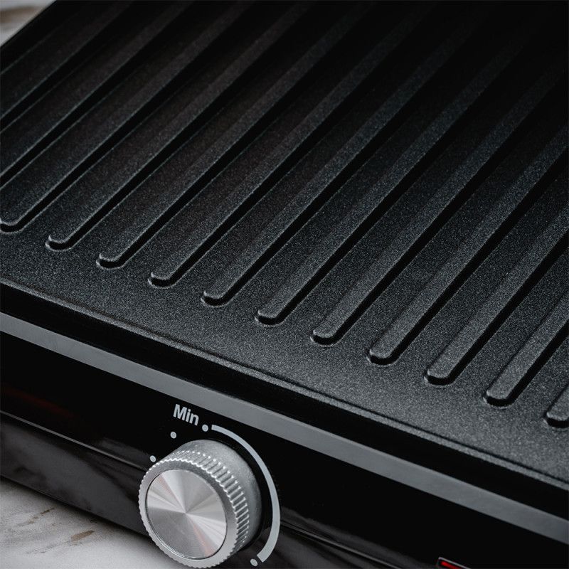 Електрическа скара Rosberg R51442M, 2000W, Грил, Незалепващи плочи-29х23 см, Отваряне на 180°C, Инокс/черен