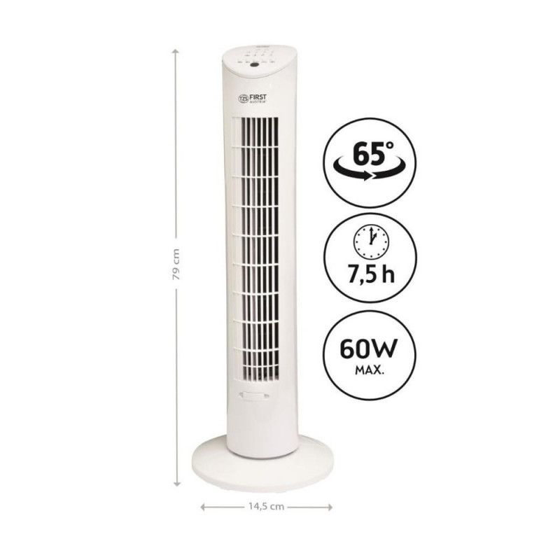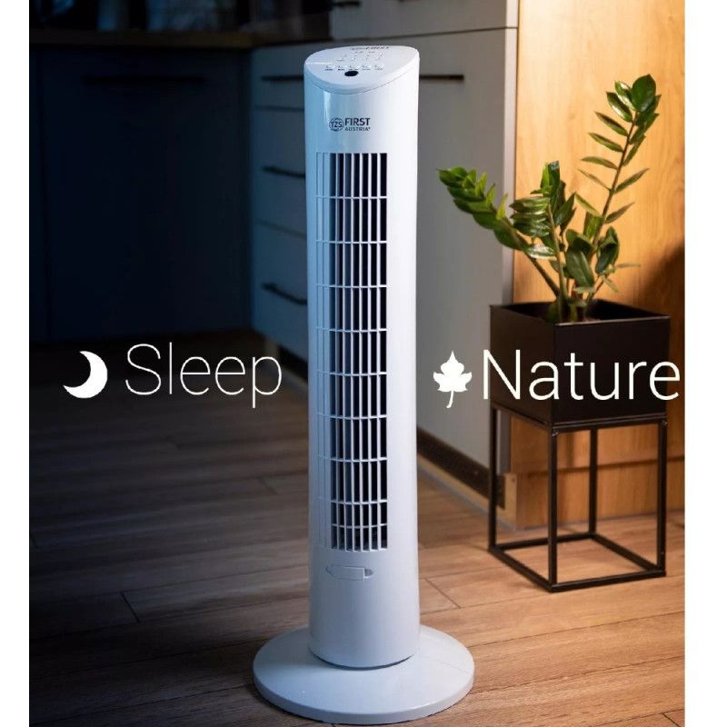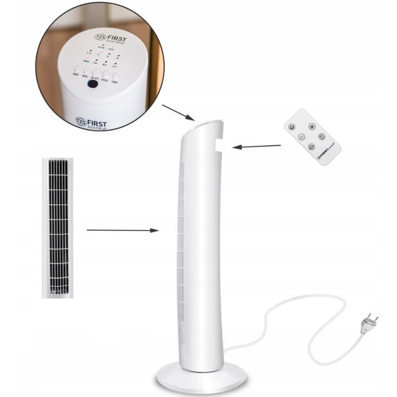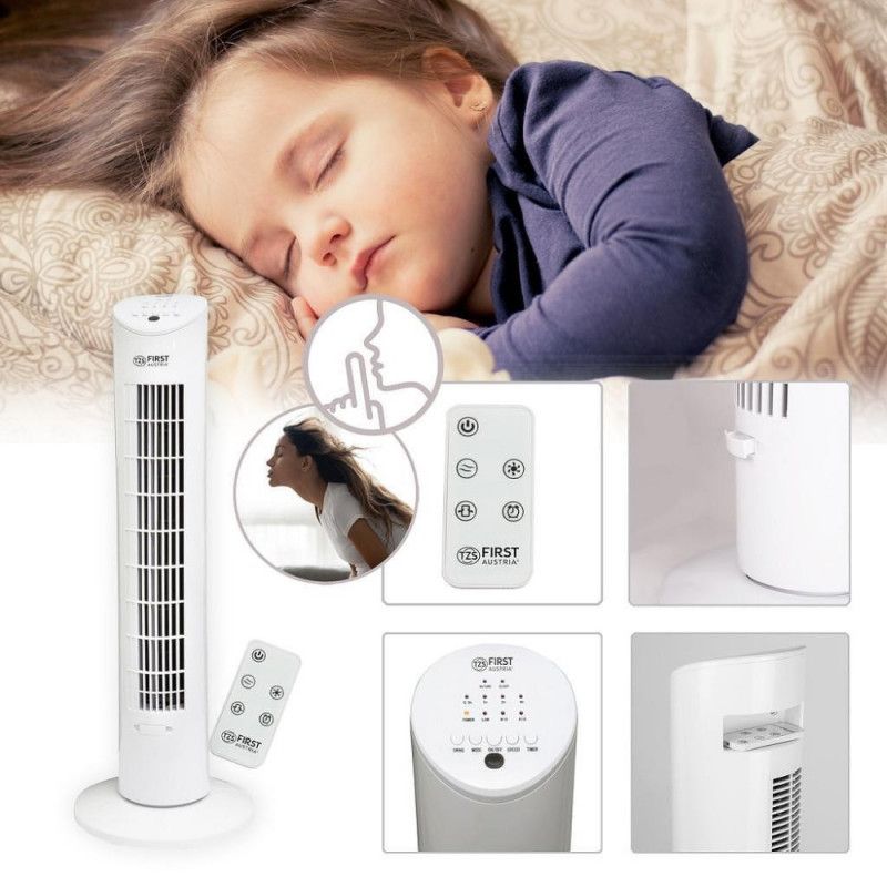 Вентилатор кула First Austria FA-5560-1, 60W, За етерични масла, Дистанционно, Таймер, Бял