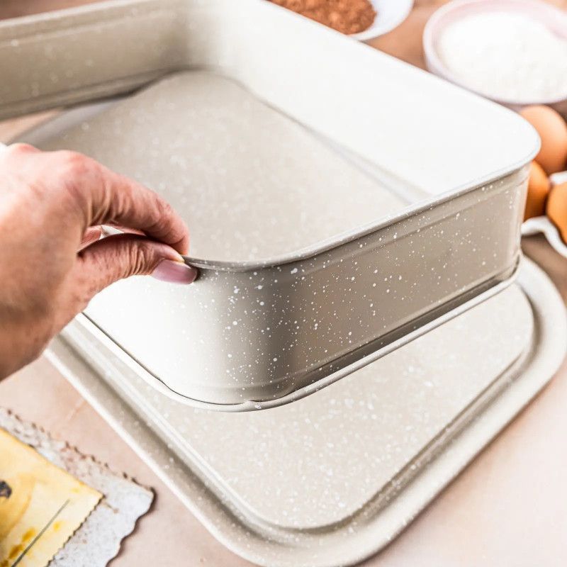 Форма за печене с падащо дъно Kinghoff KH 1978, 39x29x7.5 см, Мраморно покритие, Бежов