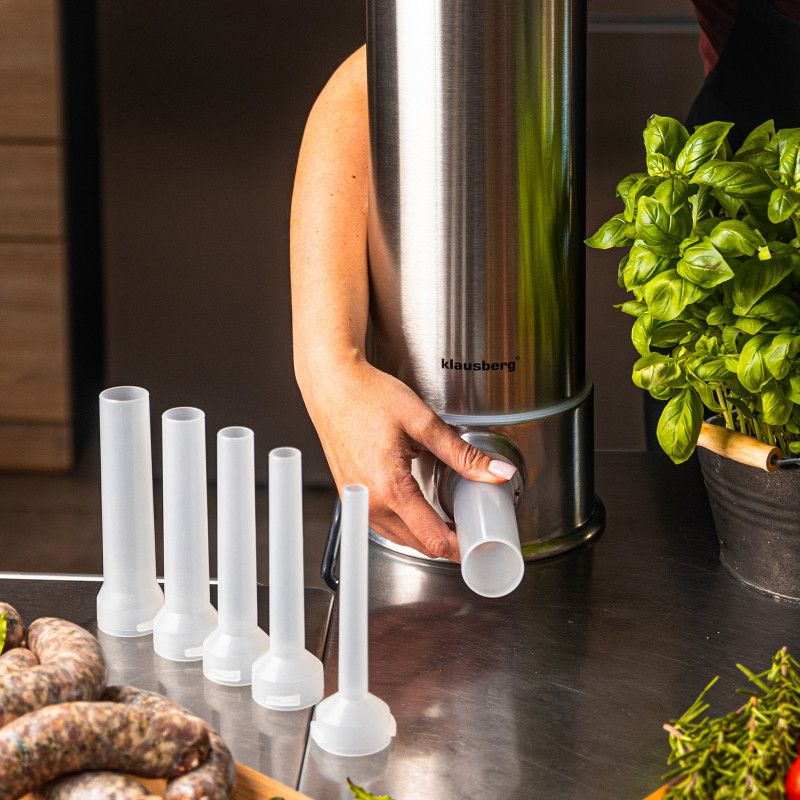 Машина за пълнене на колбаси Klausberg KB 7927, 5 Кг, Ръчна, 14-35мм, 6 фунии, Инокс