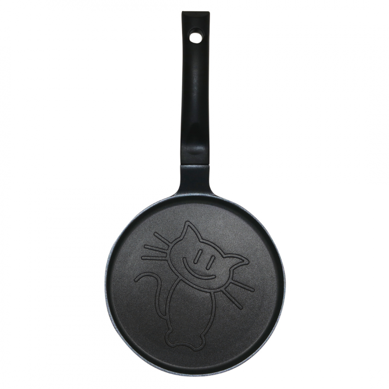 Тиган за палачинки Klausberg KB 7973, 18 см, Релефно дъно с котенце, Незалепващо покритие, Без PFOA, Индукция, Черен