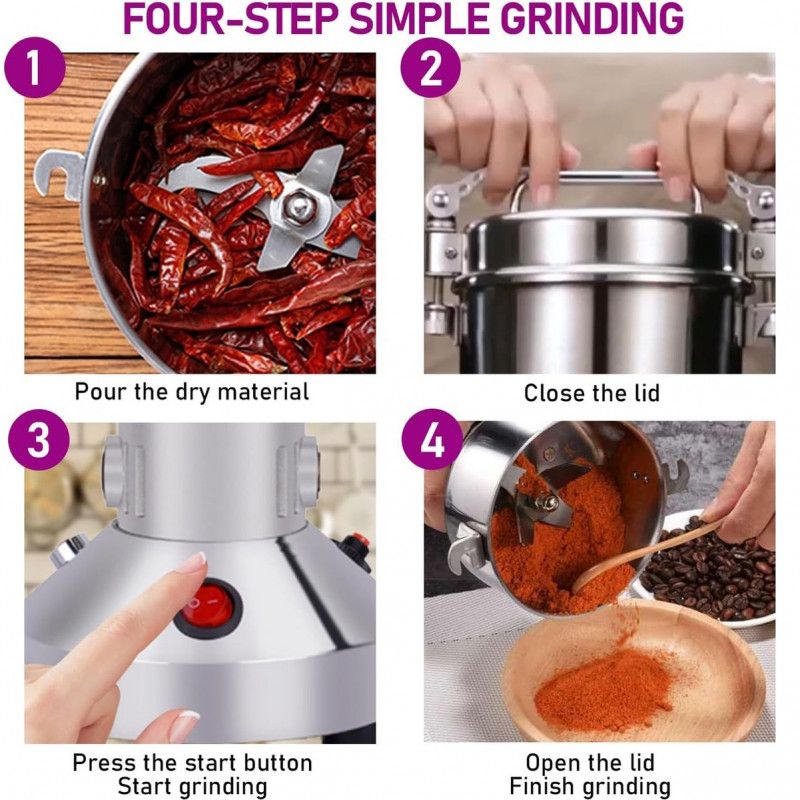 Електрическа мелница за зърно и подправки Royalty Line RL-FG21801, 850W, 150 гр, 28000 об/мин, Таймер, Инокс