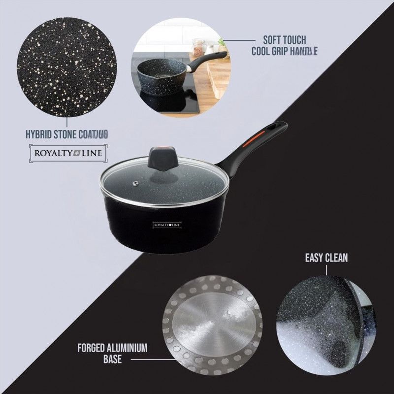 Касерола с капак Royalty Line RL-FSN20, 20 см, 2.1 л, Гранитно покритие, Индукция, Черен