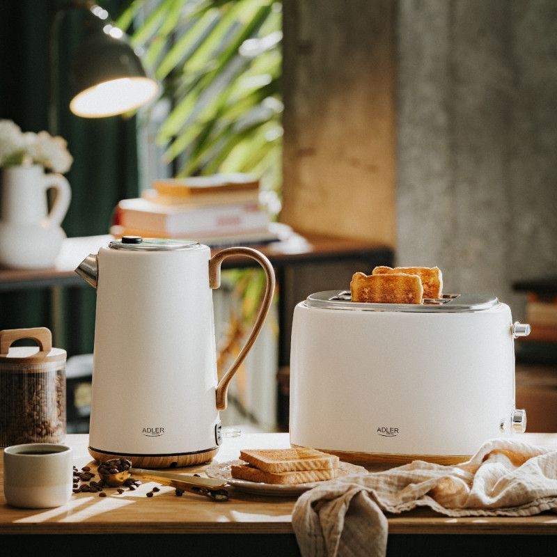 Електрическа кана Adler AD 1352, 2200W, 1.7 л, STRIX, Въртяща се основа, Автоматично изключване, Бял