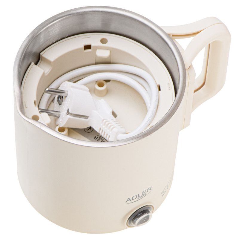 Електрическа кана за туризъм Adler AD 1388b, 650W, 0.8 л, Сваляем капак, Въртяща се основа, Бежов