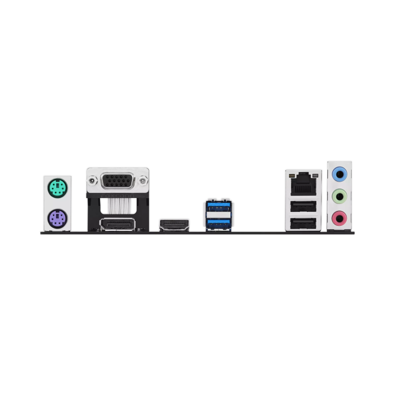 I/O:2 x USB 3.2 Gen 1(5G) ports (2 x Type-A);2 x USB 2.0 ports (2 x Type-A);1 x DisplayPort;1 x VGA port;1 x HDMITM port;1 x Realtek 1Gb Ethernet port;3 x Audio jacks;1 x PS/2 Keyboard (purple) port;1 x PS/2 Mouse (green) port