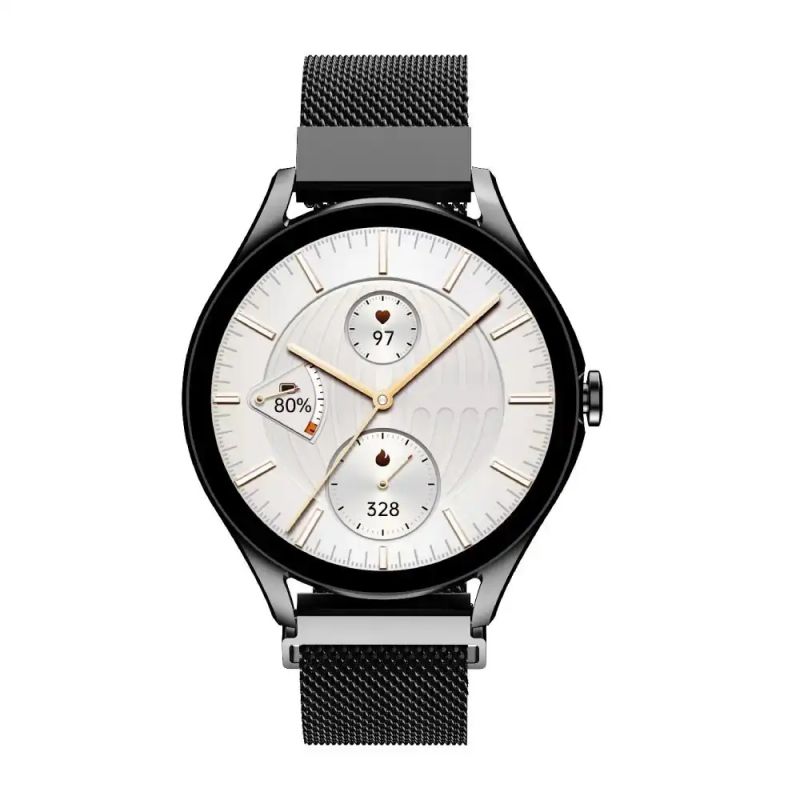 Часовник HiFuture Aura2 Black, 1.32" AMOLED, Powered by Dual Core, Metallic Frame, Bluetooth Call, 3D User Interface, 1ATM Waterproof, 24/7 True Heart Rate & Blood Oxygen Sensor, 100+ Sports Mode, Up to 7 days daily use, Extra Silicone Strap inbox