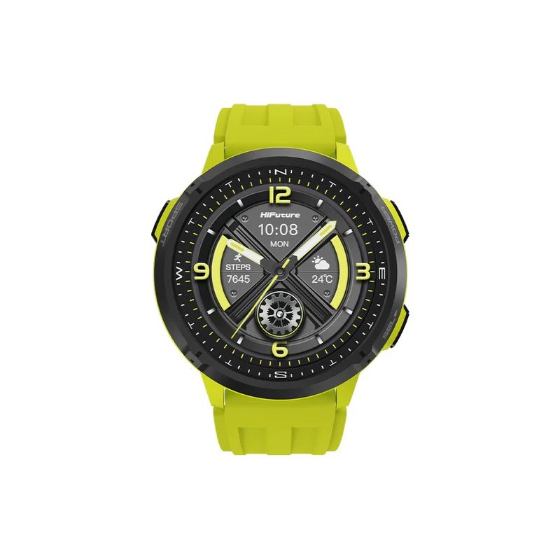 Часовник HiFuture MIX3 Fluorescent Yellow, 1.43" AMOLED, 466*466, Powered by Dual Core & Syntra AI, Bluetooth Call, 3ATM Waterproof, Compass & Altimeter, 24/7 True Heart Rate & Blood Oxygen Sensor, Up to 10 days daily use