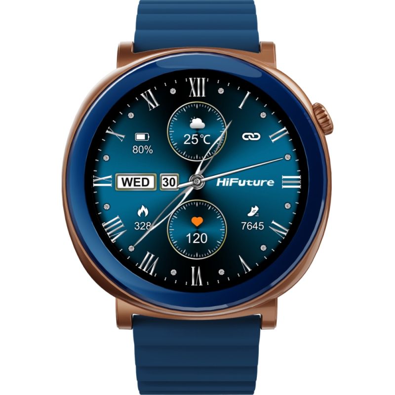 Часовник HiFuture Aurora Blue, 1.43" AMOLED, 466*466, Powered by Dual Core & Syntra AI, Bluetooth Call, IP68 Waterproof, 24/7 True Heart Rate & Blood Oxygen Sensor, Up to 10 days daily use, Magnetic Strap