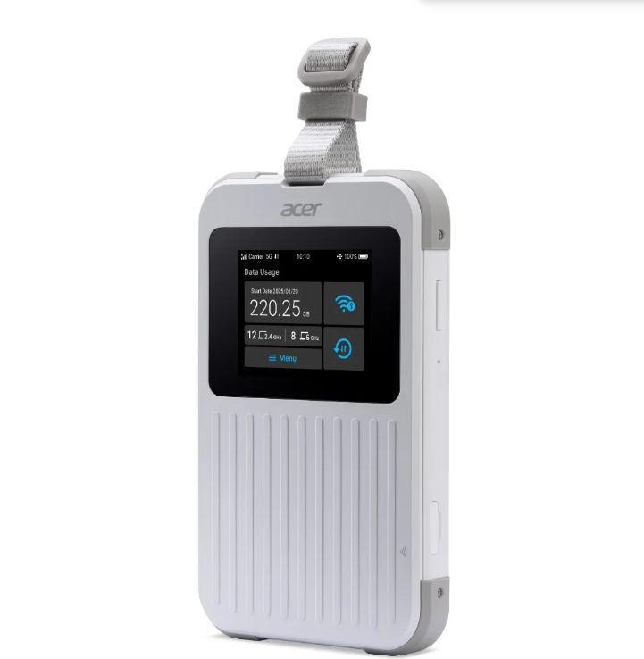 Аксесоар Acer Wi-Fi 5G Mobile Hotspot with Nano SIM (4FF), eSIM with up to 10 profiles, up to 20 connected devices using 6GHz, battery 8000mAh up to 28 hours high definition video streaming, 2.4'' Touchscreen with NFC, IP68 and MIL-STD-810