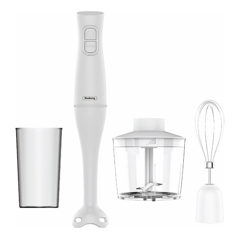 Ръчен пасатор 3в1 Rosberg R51112OC, 400W, 0.7 л, 2 скорости, Подвижен накрайник, Приставка за разбиване, Бял