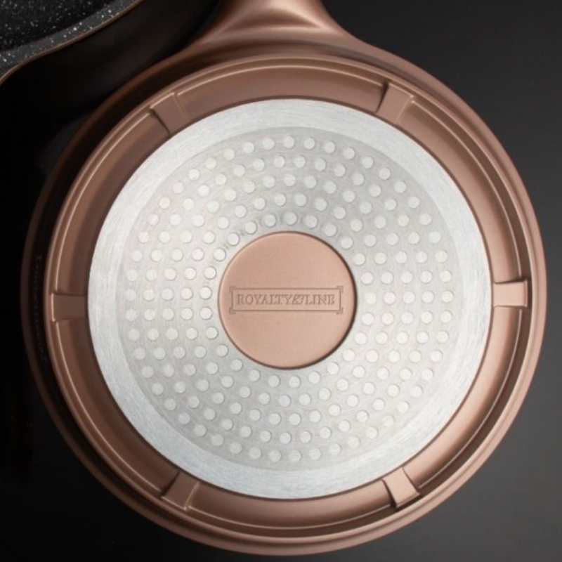 Комплект тенджери и тиган Royalty Line RL-ES2014M, 17 части, Мраморно покритие, Индукция, Меден цвят