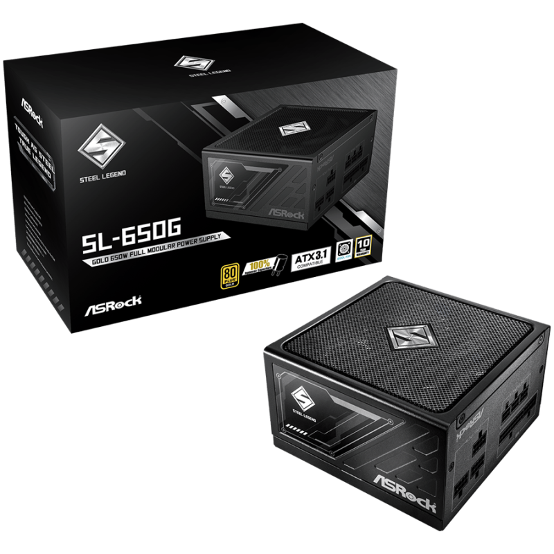 Asrock SL-650G, 650W, 80 Plus GOLD, Fully Modular PSU, Japanese Capacitors, 2x EPS 12V CPU(4+4pin), 2x PCIe (6+2pin), 3x 4-pin connectors, 6x SATA, OCP, SCP, OVP, UVP, OTP, OPP protections, 135 mm Axial Fan, ATX 3.1