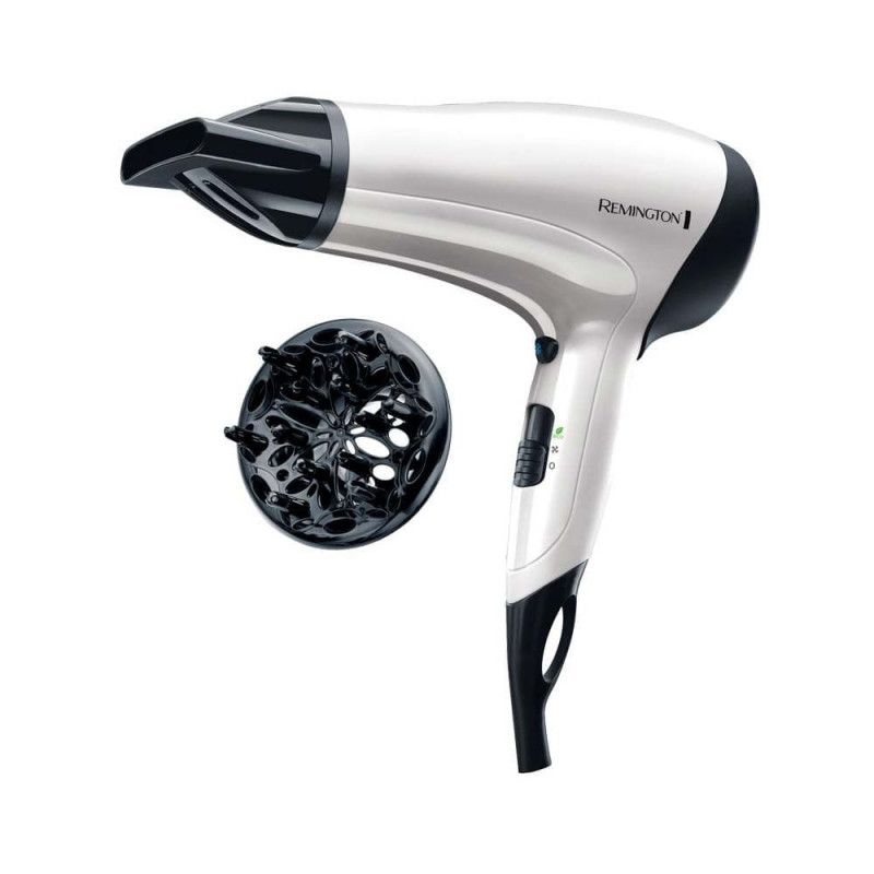 Моделът е с мощност 2000W и с йонно-керамична решетка, която допринася за равномерно разпределение на топлината и придава антистатичен ефект. Благодарение на това подобрение, сешоарът ще изсуши косата ви много по-бързо и ще предотврати досадното наелектризиране. Сешоарът за коса на REMINGTON предоставя удобен контрол на температурата в 3 степени и 2 скорости на издухване, а подвижната решетка в задната му част гарантира по-бързо и лесно почистване. Има и бутон за студена струя.