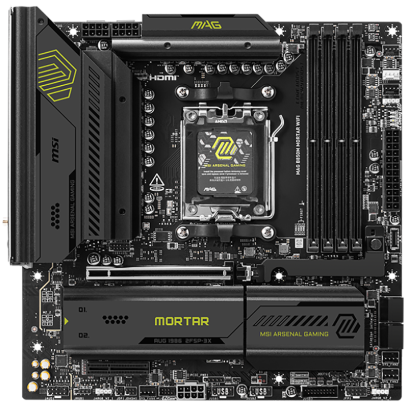 MSI B850M MORTAR WIFI, mATX, Socket AM5, 4x DDR5 Dual Channel DDR5 up to 8200(OC)MHz, 1x PCIe x16 slot, 3x M.2 slot, 4x USB 5Gbps, 1x USB 10Gbps Type-C, 1x USB 20Gbps Type-C, HDMI, DP, 7.1 HD Audio, 5G LAN, WiFI 7, BT, 3Y