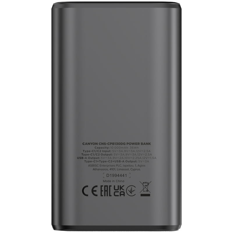 CANYON power bank OnPower 130 TFT 10000 mAh PD30W Dark Grey