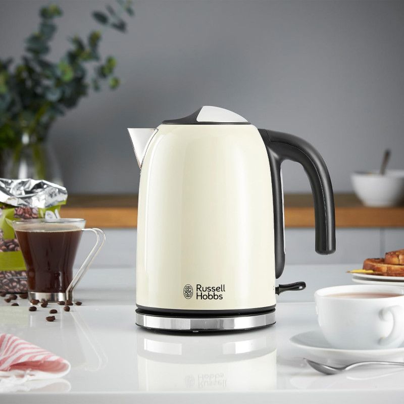Електрическа кана Russell Hobbs Colours Plus Classic Cream 20415‑70, 2400W, 1.7 л, Бързо завиране, Скрит нагревател, 360° основа, Индикатор, Кремав
