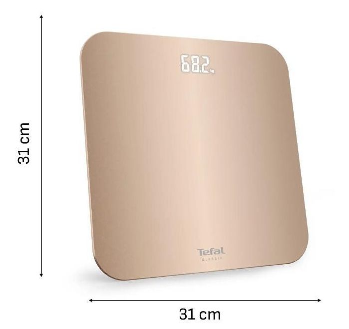 Везна Tefal PP1900V0 Classic 3 Dune Metal, glass platform (31x31cm, 5mm), 180Kg / 100g, display (75x25), back light display, 3 x AAA battery included