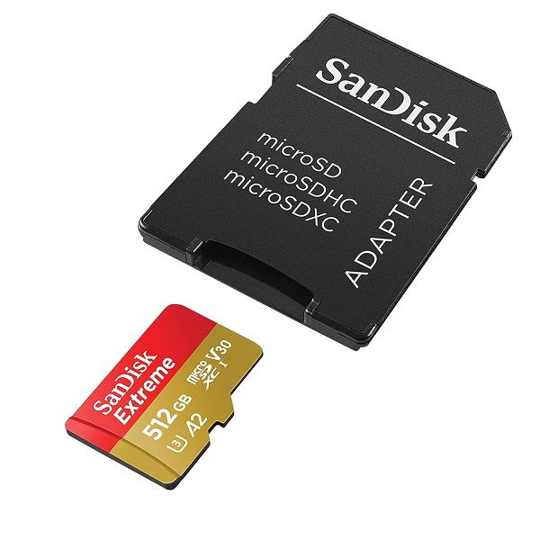 MicroSD памет 512GB SANDISK Extreme microSDXC A2 Class10 V30 UHS-I U3 + SD Адаптер