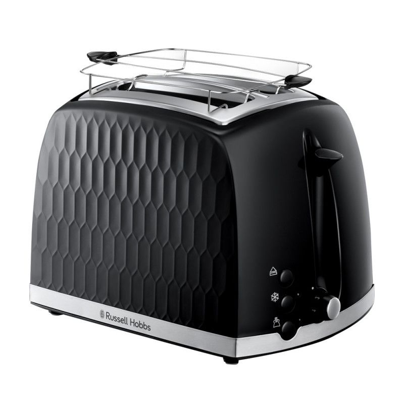 Тостер за хляб RUSSELL HOBBS 26061-56, 850W, 2 филийки, Високо повдигане, Широки отвори, Размразяване, Черен
