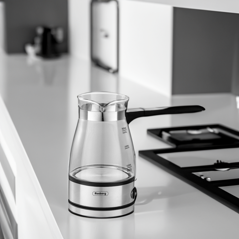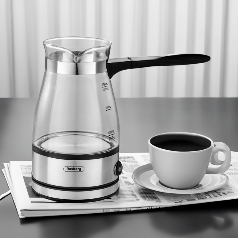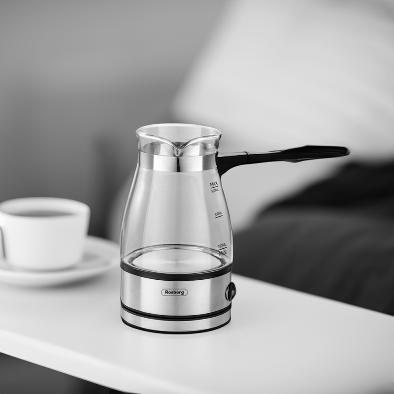 Джезве електрическо ROSBERG R51165C, Стъклено, 600W, 500 ml, Защита, Инокс/безцветен