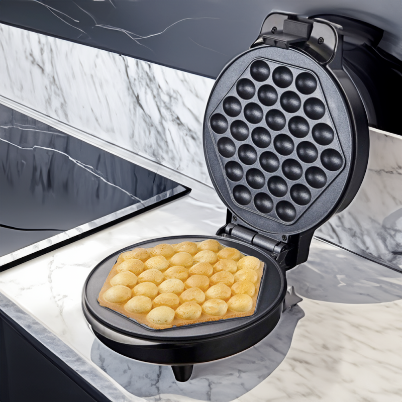 Гофретник бъбъл ROSBERG R51442H, 1000W, Bubble гофрета, Незалепващ, Черен