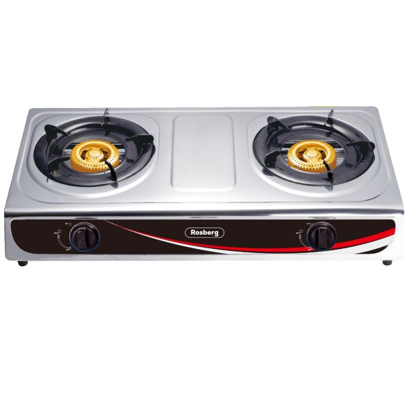 Двоен газов котлон ROSBERG R51454AD, 5.4 kWh, 30 mbar, Автоматично запалване, 2 чугунени горелки, Инокс
