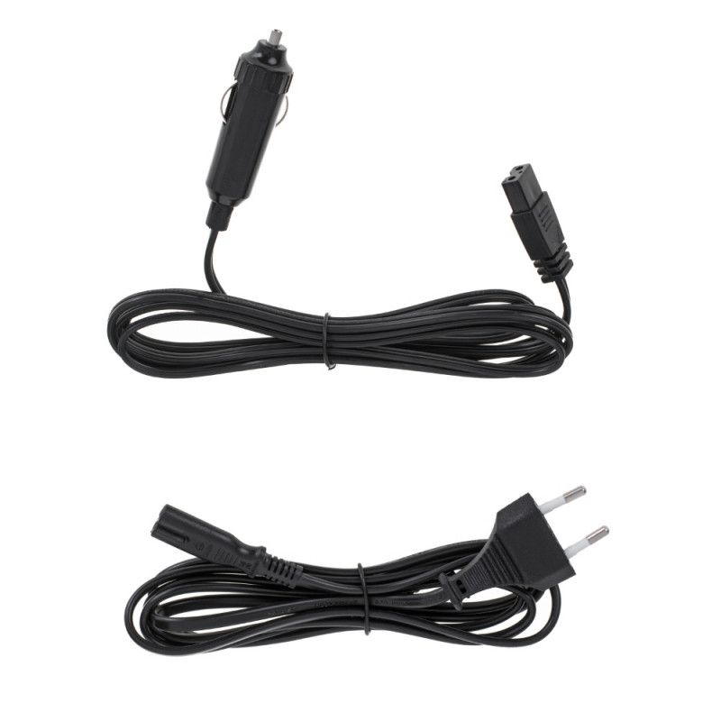 - Комплектът включва захранващи кабели за свързване на охладителя към DC 12V контакт и AC 220-240V контакт