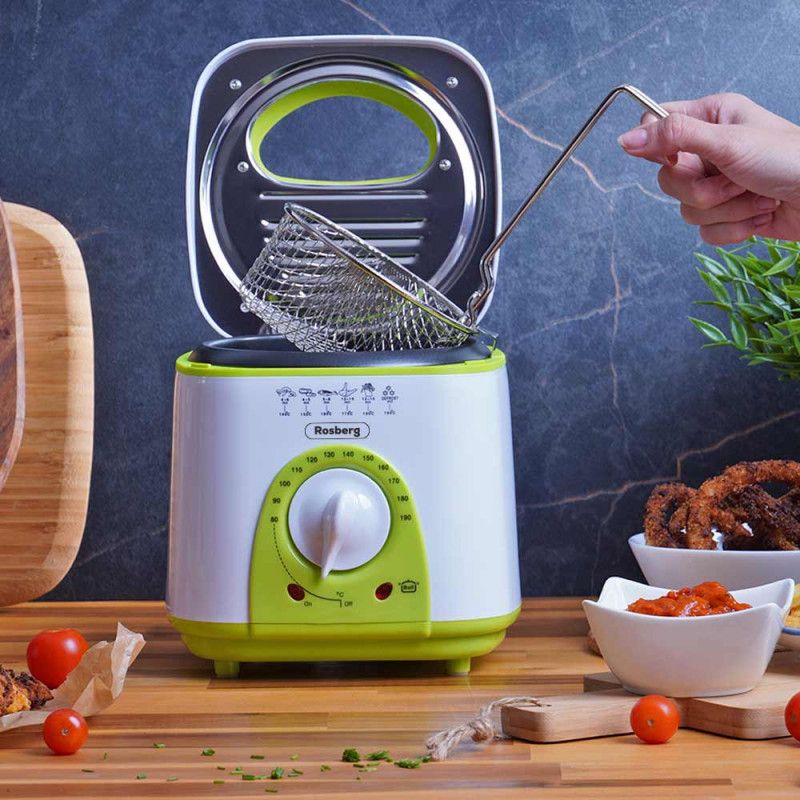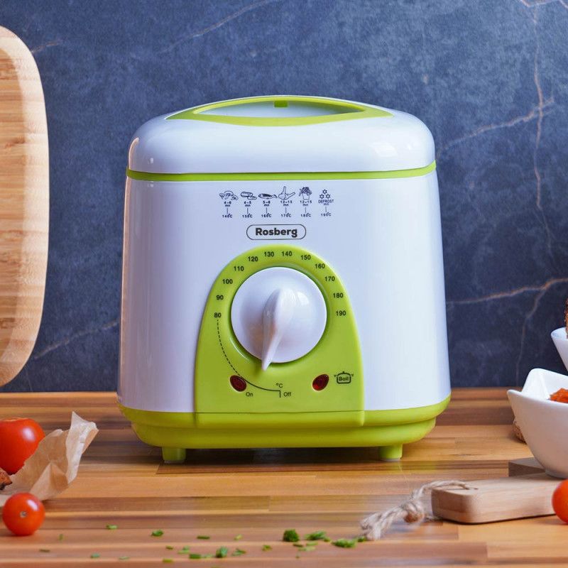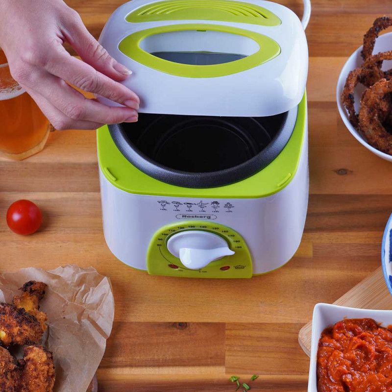 Фритюрник мини ROSBERG R51980B, 1 литър, 950W, 80-190 C, Бял/зелен