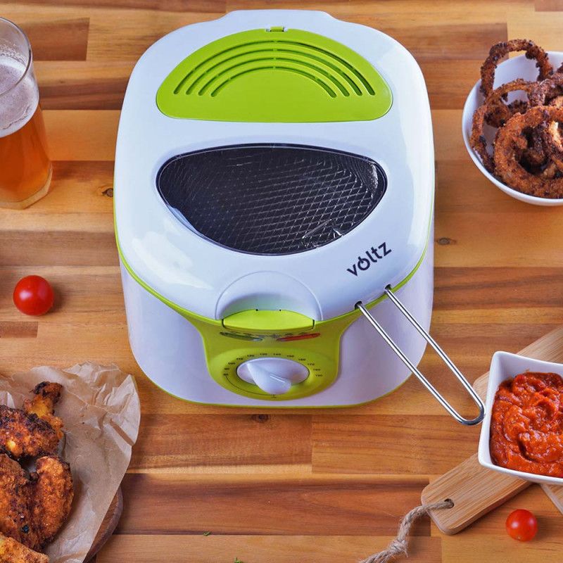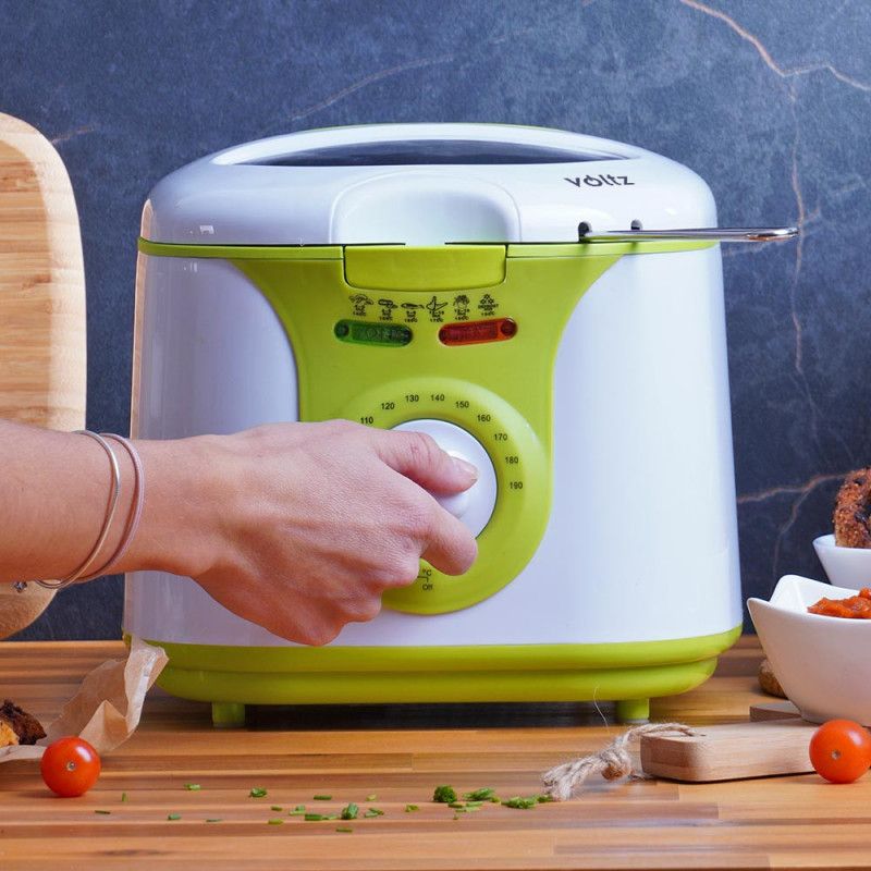 Фритюрник Voltz V51980A, 2 литра, 1300W, 80-190 C, Незалепващ съд, Бял/зелен