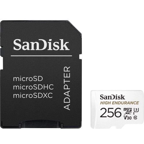 MicroSD памет 256GB SANDISK High Endurance, microSDXC Class 10 UHS-I U3, V30 + SD Адаптер