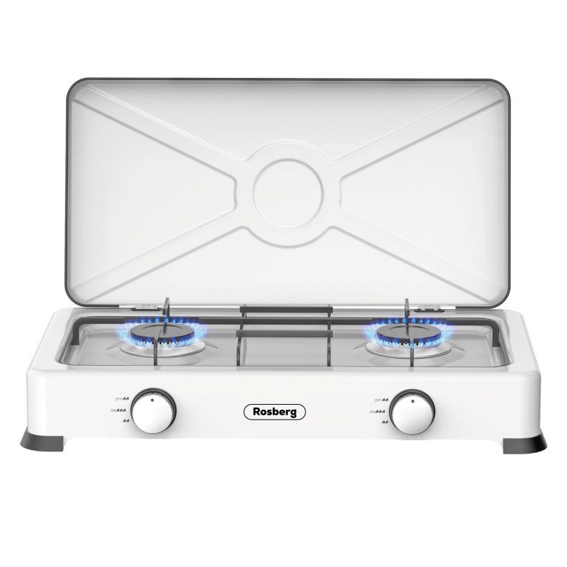 Двоен газов котлон с капак ROSBERG R51454E2 2х 2.2 kWh, 30 mbar, Въглеродна стомана, Бял