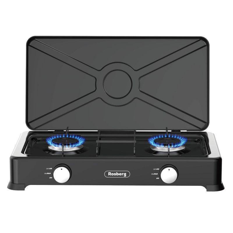 Двоен газов котлон с капак ROSBERG R51454E2 2х 2.2 kWh, 30 mbar, Въглеродна стомана, Черен