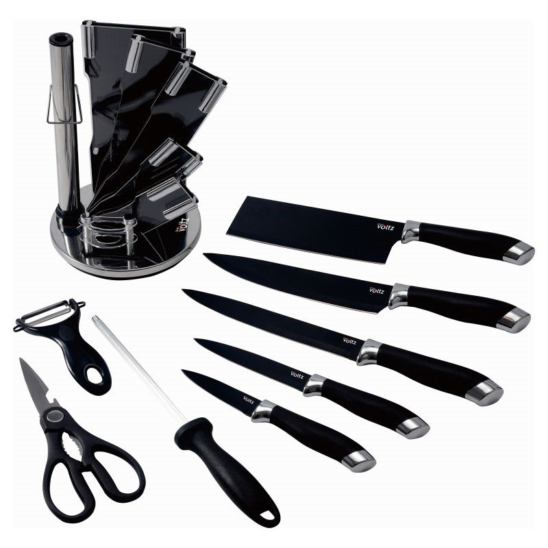 Комплект ножове Oliver VOLTZ OV51633K9S, 9 части, Поставка, Черен/Сребрист