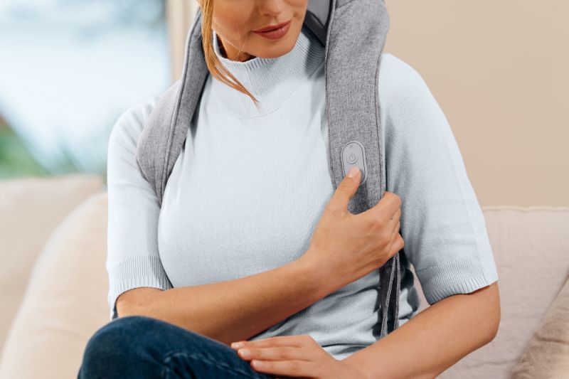 Масажор Beurer MG 154 3D Battery-Powered Neck Massager, 4 massage heads + 2 massage fingers; 2 speed; Hands-free; Automatic switch-off; Heat function; Washable removable cover