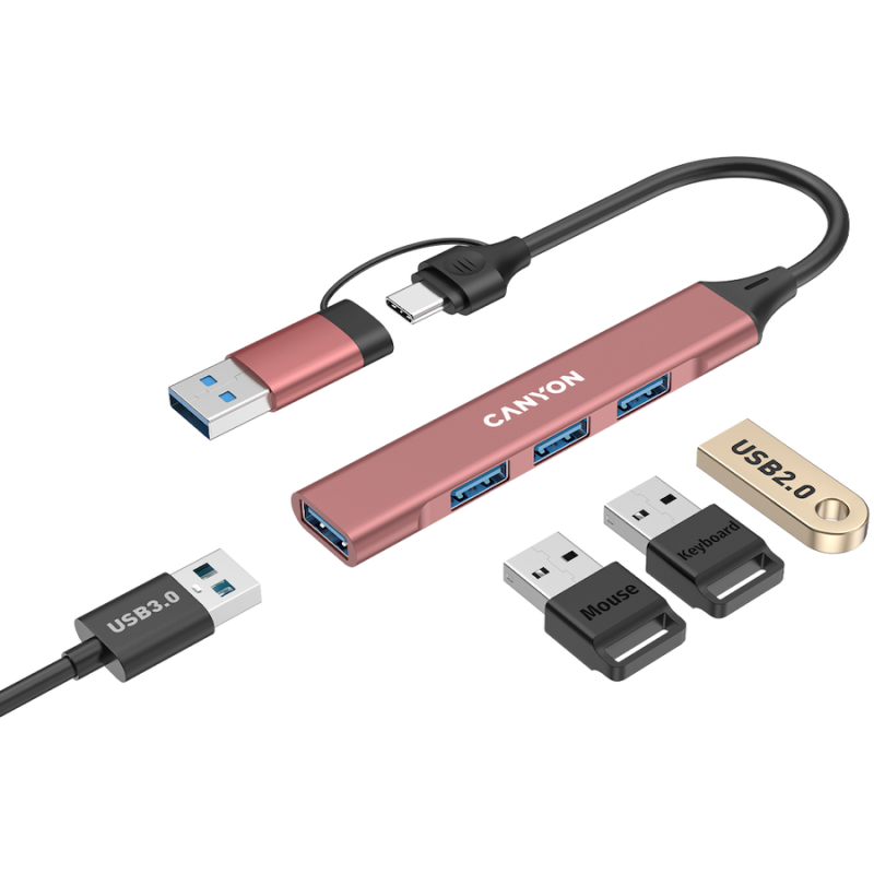 USB hub CANYON DS-02, 4 Port USB-A/C Pink