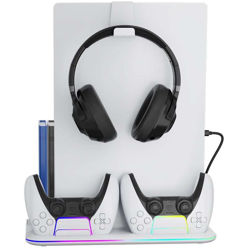 Многофункционална охладителна стойка за PlayStation 5 CANYON CND-CSPS5W-1, cooling stand CS-51 RGB PS5 Slim/DE Charge White
