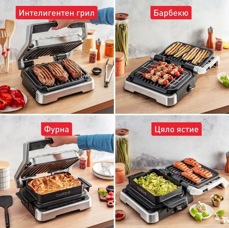 Барбекю Tefal GC774D30 Optigrill 4In1 Inox, (Grill, Bbq, Oven, Complete Meal), 600Cm2 Cooking Surface, Automatic Cooking Sensor, 9 Automatic Programs, 3 Adjustable Temp., Cooking Level Indicator, Non-Stick Die-Cast Alum. Plates