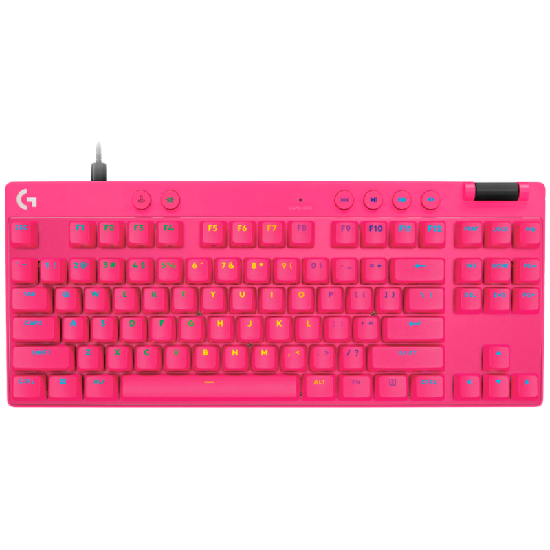 Безжична геймърска клавиатура LOGITECH PRO X 60 (920-013253), Bluetooth, LIGHTSPEED Wireless, Linear Switch, USB, Magenta