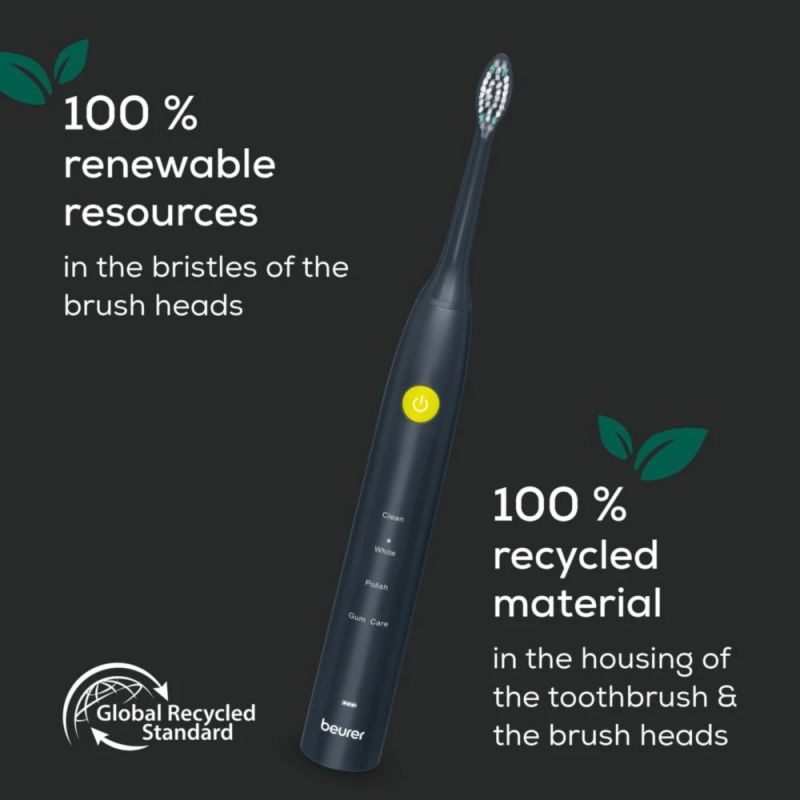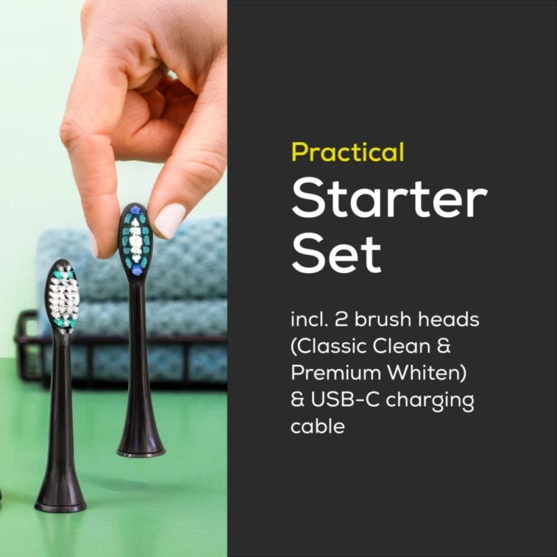 Електрическа четка за зъби Beurer SC 30 Jet Black, Electric Sonic Toothbrush, up to 80,000 mov/min, 4 cleaning programs: Clean, White, Polish, Gum Care, Int. 2-min. timer, Incl. 2 toothbrush heads and USB-C charging cable, 15 days of battery life